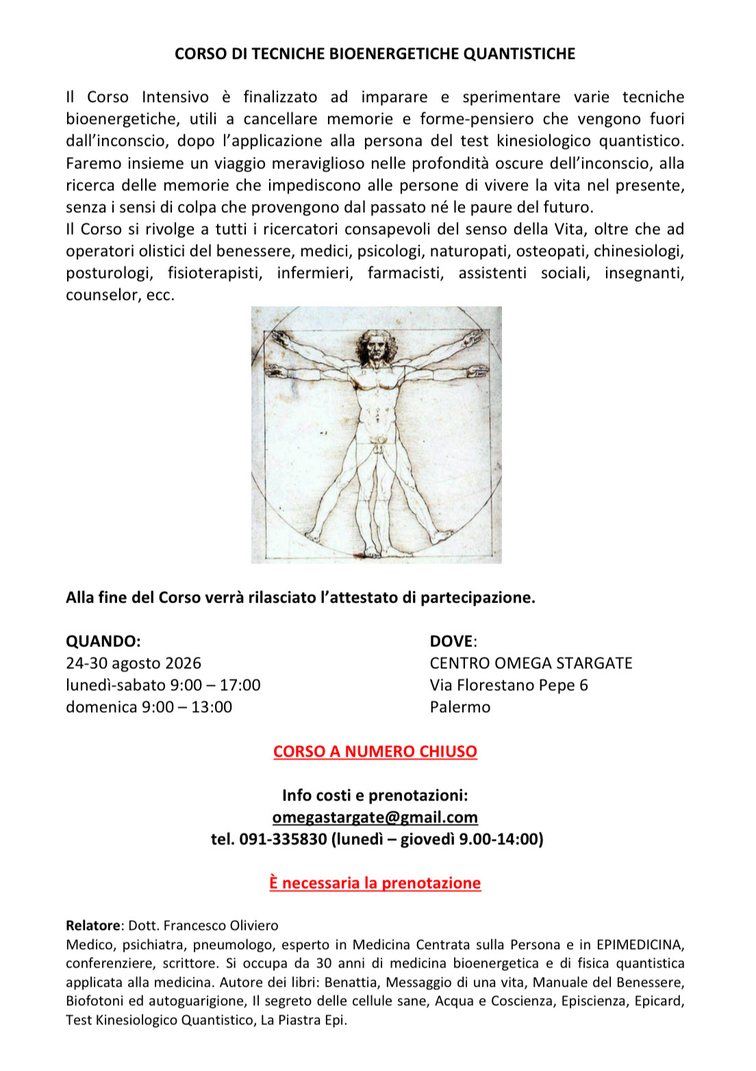 CORSO DI TECNICHE BIOENERGETICHE QUANTISTICHE 2026